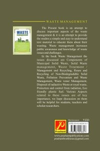In the book Waste Management the issues discussed are Components of Municipal Solid Waste, Solid Waste Management, Waste Treatment / Management and Recycling, Reuse and Recycling of Non-Biodegradable Solid Waste, Pollution Prevention and Waste Management, Waste Water Management, Disposal of radioactive, Waste or royal waste, Protection and control from radiation, Eco friendly plastic fuel. Various Aspects related to these issues are of key importance, we hope discussion on them will be helpful for students, teachers and scholar researchers.