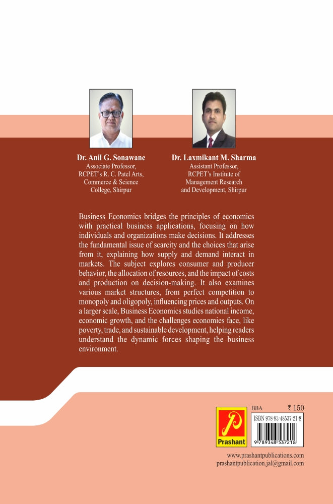 Business Economics bridges the principles of economics with practical business applications, focusing on how individuals and organizations make decisions. It addresses the fundamental issue of scarcity and the choices that arise from it, explaining how supply and demand interact in markets. The subject explores consumer and producer behavior, the allocation of resources, and the impact of costs and production on decision-making. It also examines various market structures, from perfect competition to monopoly and oligopoly, influencing prices and outputs. On a larger scale, Business Economics studies national income, economic growth, and the challenges economies face, like poverty, trade, and sustainable development, helping readers understand the dynamic forces shaping the business environment.