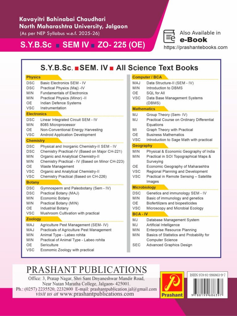 We are very glad to present the book ZO–225 ‘Sericulture’ in the hands of SYBSc students. The book is strictly written and complied according to the NEP 2020 syllabus framed by the Board of Studies in Zoology, KBC NMU Jalgaon, for Second year B.Sc. to be implemented from June 2025 and is written in lucid, simple language giving exhaustive details.