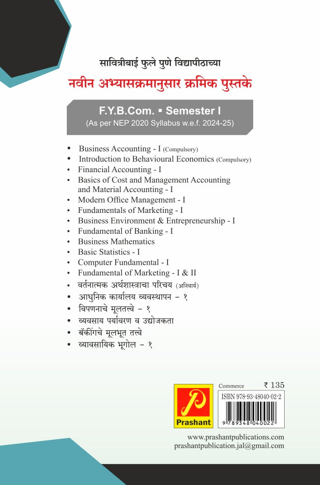 According to the National Education Policy 2020, Savitribai Phule Pune University, Pune (SPPU) has decided to change the curriculum of FYBCOM for the Faculty of Commerce and Management, from the academic year 2024-2025. The fundamentals of marketing subject are important at the major level in the class curriculum. We have written the present book according to the syllabus of NEP pattern. The broader interest of professors, researchers and students teaching this subject has been taken into consideration while writing the book. We have also considered that the students and scholars of the Faculty of Commerce and Management should get a better understanding of this subject and develop the skills of this subject. We are particularly happy to hand over the present book to the readers, as it has been written using as many concepts as possible related to the subject, simple and understandable language. Not only will it benefit students of the subject, but it will also benefit research students and research mentors and professors. It also includes questions designed to prepare students for competitive exams. The library has helped with reference books by many eminent authors for book writing.