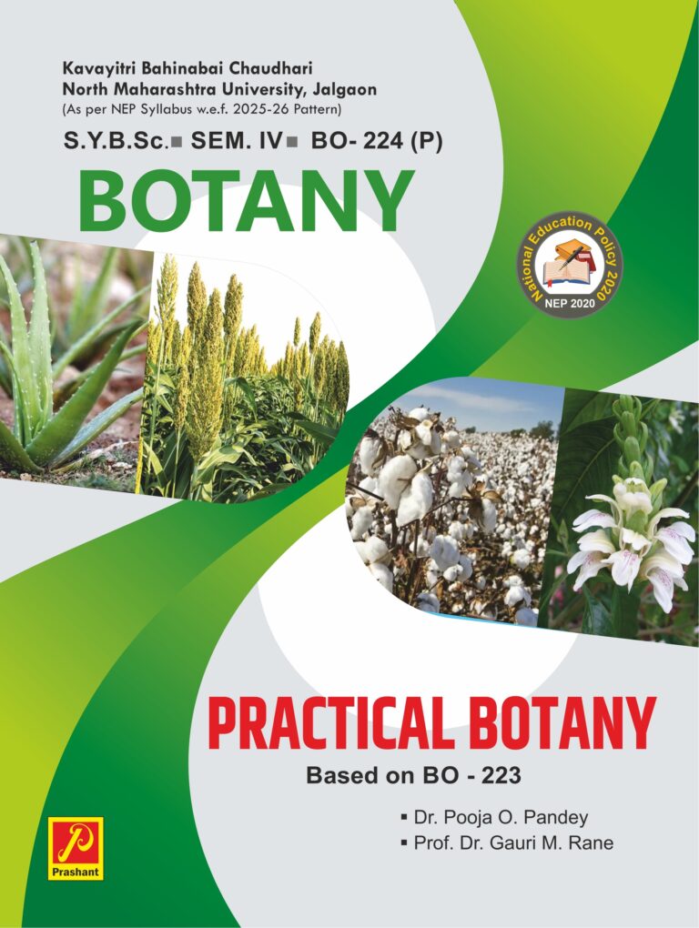 We are very happy to give this practical book titled “Practical Botany” ( MIN- 5) BO- 224 for S. Y. B. Sc. Students and teachers of Kavayitri Bahinabai Chaudhari, North Maharashtra University, Jalgaon. It includes Practical based on BO 223 (Sem. IV) as per NEP 2020, w.e.f– June 2024-25. This practical manual furnishes its level best, for the practical information required for completion of practical syllabus of S. Y. B. Sc. Botany. The students of S.Y.B.Sc. will be Defiantly benefited for their practical knowledge. Each practical is provided with neat, easy and well illustrated labelled diagrams. We are confident that this book will prove a feasible assistance to the students and teachers while working in the laboratory. Adequate care has been taken regarding the correctness of the diagrams drawn and matter written in a manual to eliminate the routine error as far as possible. This book is fairly illustrated and many possible details have been incorporated.