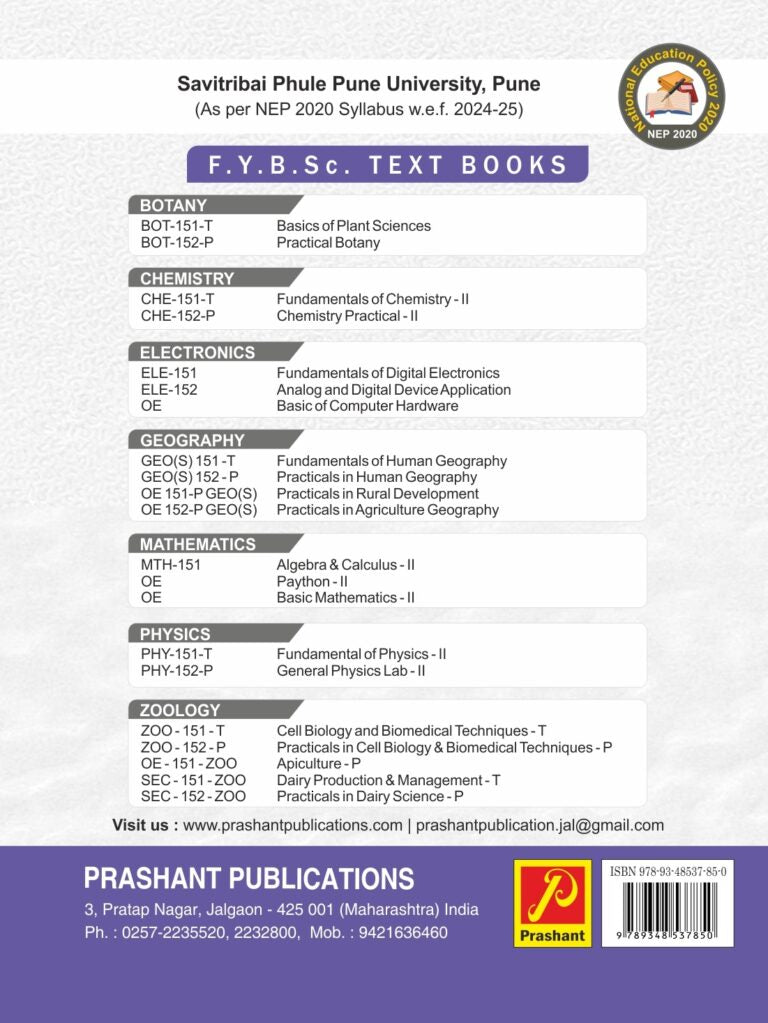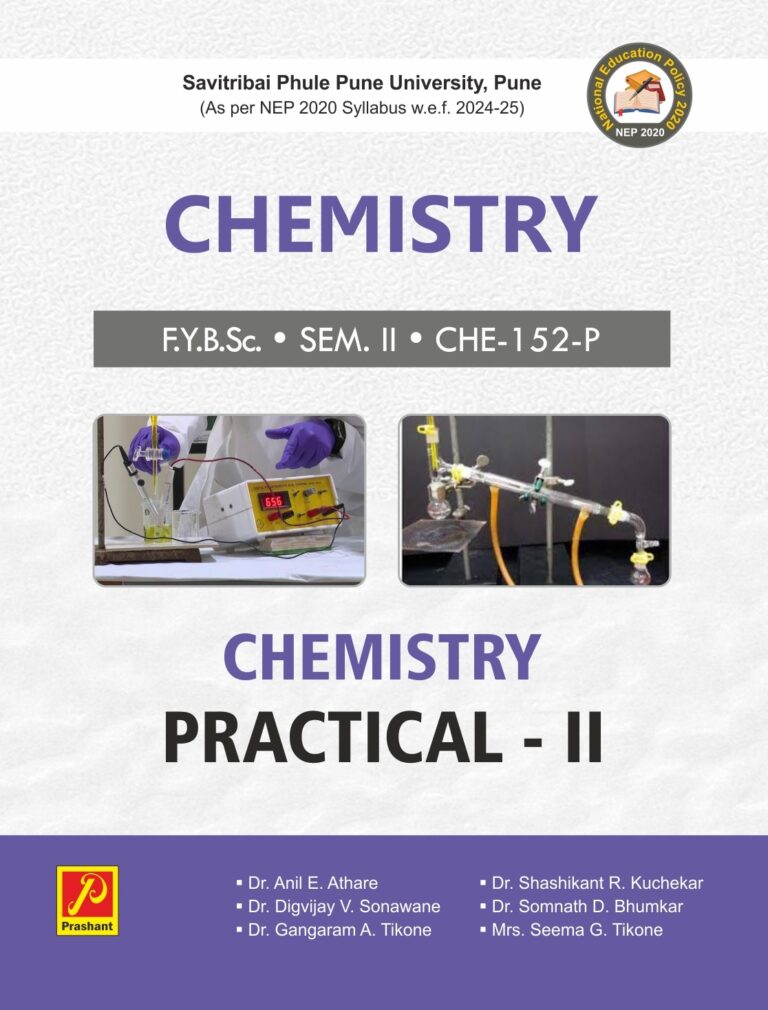 We are happy to place the first edition of CHE 152-P (MJ) Chemistry Practical – II, under faculty of Science and Technology, Savitribai Phule Pune University Pune, according to new syllabus implemented from year 2024-2025, as per National Education Policy – 2020.