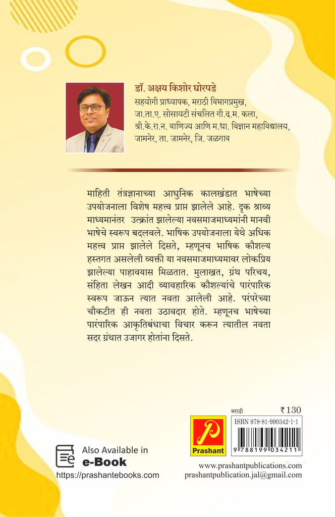 उपयोजित मराठीचे क्षेत्र दिवसेंदिवस व्यापक होत आहे. नवसमाज माध्यमांनी भाषेच्या उपयोजनाला व्यापक आयाम दिला. एवढेच नव्हे तर भाषिक कौशल्याचे उपयोजन करून नवे रोजगार निर्माण केले. राष्ट्रीय शैक्षणिक धोरणासही हेच अपेक्षित आहे. निव्वळ भाषेचा उपयोग करून रोजगार निर्मिती करता येते किंवा रोजगार प्राप्त करता येतो हे उपयोजित मराठीने सिद्ध केलेले आहे. भविष्यात भाषेचे कोणते कौशल्य हस्तगत केले तर आपण यशस्वी होऊ शकतो हे ओळखून मराठी अभ्यास मंडळाने अभ्यासक्रमाची रचना केली. यात मुलाखत लेखन, ग्रंथ परीक्षण, संपादन, स्तंभलेखन, जाहिरात लेखन, निवेदन, संहिता लेखन, बातमी लेखन इत्यादी घटक नेमून अभ्यास मंडळाने आधुनिक जीवनाची नस ओळखली यात काही शंका नाही. तसा विचार केला तर वरील घटक हे अभ्यासक्रमात समाविष्ट होतेच आणि काळानुसार त्याचे स्वरूपही ठरलेले होते. आता काळ बदलतो आहे. माहिती तंत्रज्ञानाचे जग अस्तित्वात आलेले आहे. झपाट्याने यंत्रात तंत्रात क्रांती होत आहे. माध्यमांचे स्वरूप बदलल्याने वरील घटकांच्या स्वरूपातही बदल झालेला आहे. वरील घटक लेखनाचे तंत्रही बदललेले आहे. हा बदल लक्षात घेऊनच सदर पुस्तकातील अभ्यास घटकांची रचना केलेली आहे. त्यामुळे वाचक, अभ्यासकांसाठी हे पुस्तक नवीन आहे.