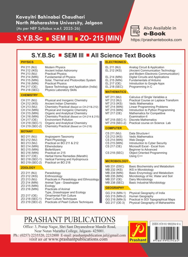 of Studies in Zoology, KBC NMU Jalgaon, for Second year B.Sc. to be