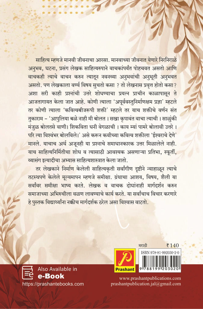गेल्या वर्षी पासून महाविद्यालयीन स्तरावरती नवीन शैक्षणिक धोरण 2020 लागू करण्यात आले.च्या अनुषंगाने या अभ्यासक्रमाची रचना करण्यात आलेली आहे. नवीन शैक्षणिक धोरणात विद्यार्थ्यांमध्ये कौशल्य निर्माण व्हावी तो कौशल्यधिष्टीत बनवा यावरती भर देण्यात आलेला आहे आणि अशा या त्याअनुषंगाने सर्व वर्गांचे अभ्यासक्रम तयार केले जात आहेत. अशा या अभ्यासक्रमातसुद्धा द्वितीय वर्षाच्या अभ्यासक्रमात ‘साहित्यविचार आणि समीक्षा' या विषयाचा समावेश होणे हे या विषयाचे महत्त्व अधोरेखित करते आहे. म्हणूनच या विद्यार्थ्याला साहित्यशास्त्र आणि समीक्षा याचे पूर्णपणे आकलन व्हावे, ते त्याला सहजपणे समजावे, आकलन व्हावे व त्याने ते कौशल्य आत्मसात करावे अशा वेगवेगळ्या दृष्टिकोनातून सदर पुस्तकाचे लेखन करण्यात आलेले आहे. तसेच अतिशय सोप्या व सुलभ पद्धतीने सर्व घटकांचे विश्लेषण करून सांगण्याचा प्रयत्न केलेला आहे आणि म्हणूनच आशा आहे की हे पुस्तक विद्यार्थ्यांच्या पसंतीस पडेल.