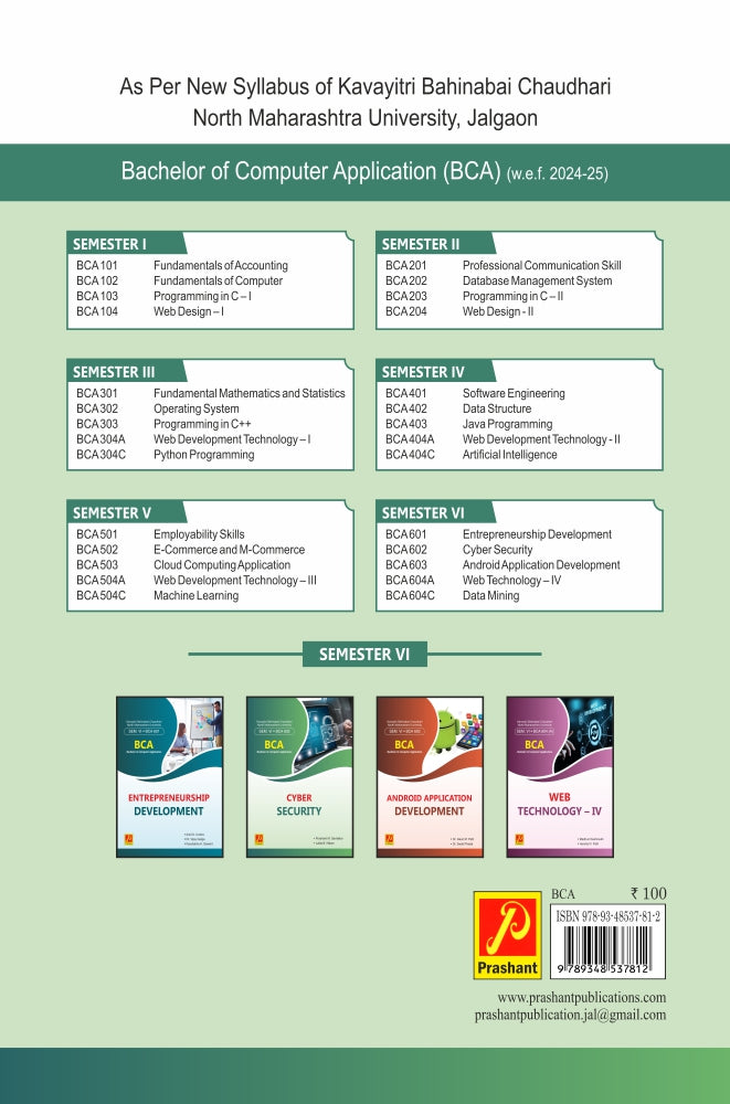 This text is in accordance with the new syllabus CBCS-2023 recommended by the Kavayitri Bahainabai Chaudhari North Maharashtra University, Jalgaon, which has been serving the need of T.Y.B.C.A. Computer Science students from various colleges. This text is also useful for the student of Engineering, B.Sc. (Information Technology and Computer Science), M.Sc, M.C.A. B.B.M., M.B.M. other different Computer courses.