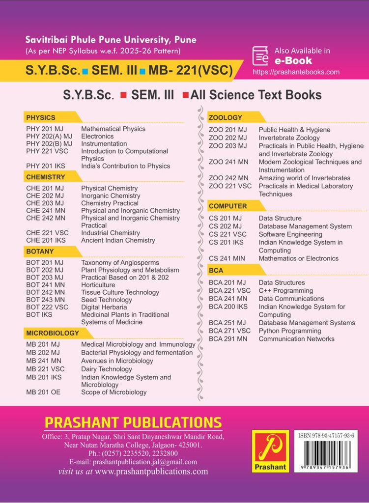 The field of Dairy Technology has immense significance in India, a country recognized as the world’s largest producer and consumer of milk and milk products. The subject not only bridges microbiology with food science but also highlights the role of microbes, quality control, and technological innovations in ensuring safe, nutritious, and value-added dairy products. This textbook has been prepared exclusively for S.Y. B.Sc. Microbiology students of Savitribai Phule Pune University, in alignment with the guidelines of the National Education Policy (NEP) 2020.