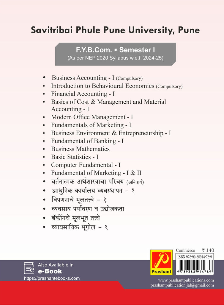 This textbook, Financial Accounting Paper–I, has been designed with the dual objective of fulfilling curriculum requirements and inspiring students to think beyond examinations. The content has been structured innovatively blending fundamental concepts with practical illustrations, case-based examples, and insights into modern accounting practices such as GST, computerized systems, and sustainability reporting. The book aspires not only to provide clarity and accuracy but also to instill confidence in learners to apply accounting knowledge in real-world contexts.