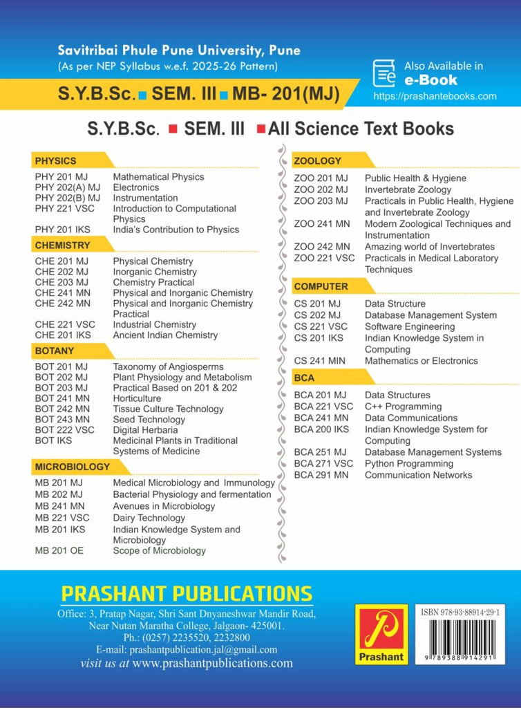 This textbook, Medical Microbiology and Immunology, is specifically developed for Second Year B.Sc. Microbiology students, aligning with the academic syllabus of Savitri bai Phule Pune University (SPPU). It aims to present the fundamental concepts of disease-causing microorganisms and the human immune system in a clear, organized, and student-friendly manner. These two core fields form the backbone of microbiology education, with direct relevance to public health and medical sciences.