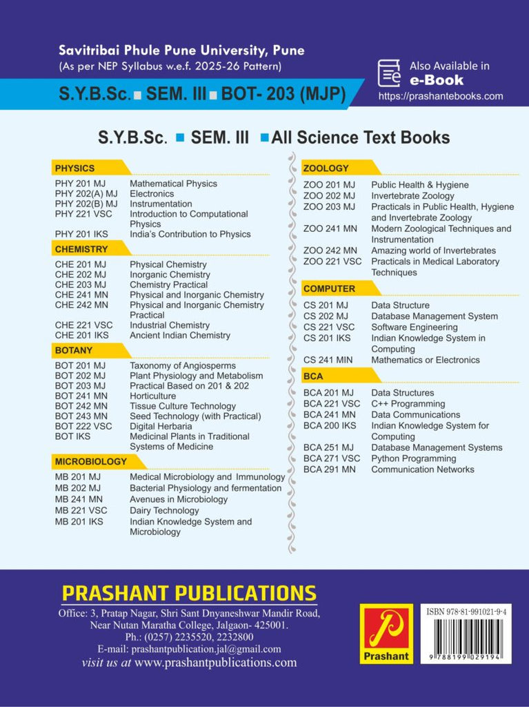 This small book BOT-203 MJP practicals is as per new syllabus 2025-26. Practicals are written as per our experience of several years in handling the subject practicals. All the matter has been written with utmost care, so that by reading these protocols students will get exact idea of doing there practicals with full confidence.