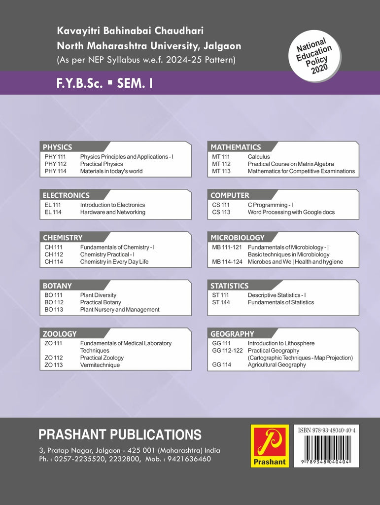Physics, KBC NMU Jalgaon, for First year B.Sc to be implemented from