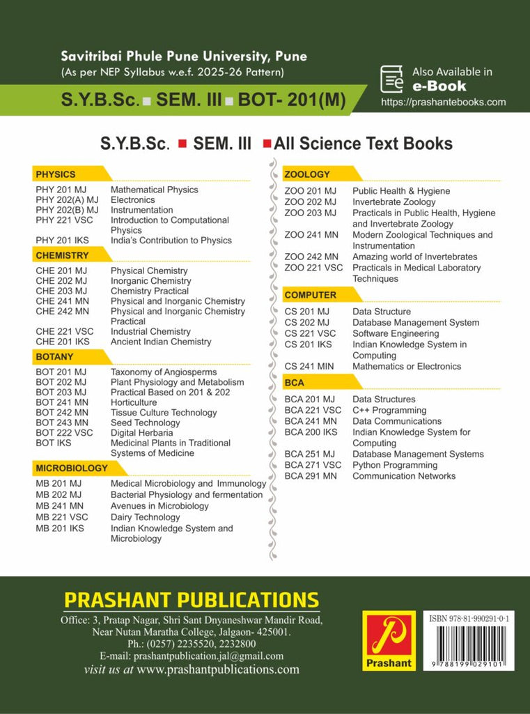 Some topics have elaborations on ICN and few selected families of angiosperms. The topic on Botanical Gardens have been extremely well presented with some selected photographs. We authors are thankful to our publisher Shri. Rangrao Patil of Prashant Publications, Jalgaon for his sincere efforts to get the book in present from. We are sincere to get the book in present form.